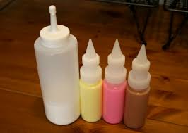 In a saucepan over low heat melt 4 to 5 ounces of black chocolate and put it in a bottle if you have one, we can help with the spoon if not.